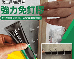 NT$1569多功能實用强力免釘膠 粘墻面免打孔 抽屜瓷磚置物架 鏡子挂鈎 玻璃密封膠水!防水防黴屬性撐得住潮濕油汙區,多材質兼容讓全屋安裝無死角,日後拆卸無殘膠,租房、自裝都能放心用!詳情 - 免打孔鉸鏈NT$860