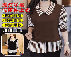 NT$1599採用德國8針電腦提花機 將襯衫領口 針織紋理 內搭下擺無縫織造成型詳情 - 顯瘦假兩件襯衫NT$998