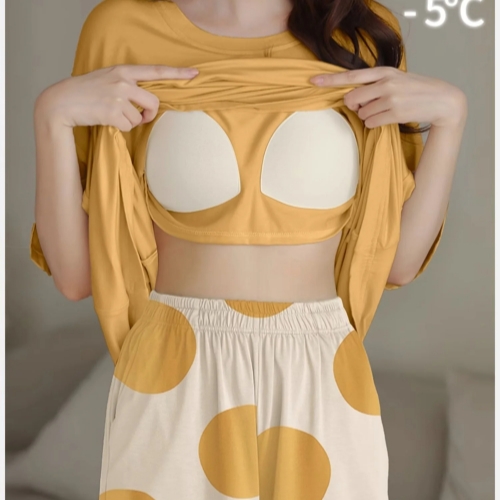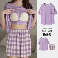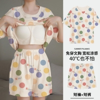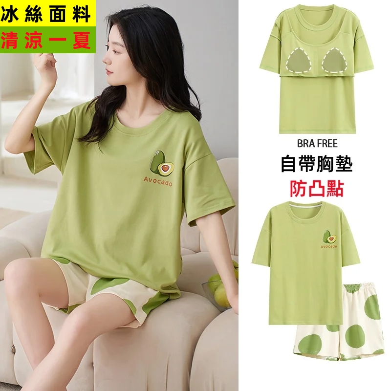 夏季睡衣套裝,帶胸墊睡衣,寬鬆大碼,家居服睡衣夏天可外穿!新品上市,限時搶購