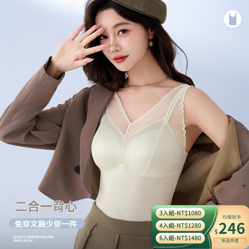 2025新款春夏 緞面美背女吊帶背心 帶胸墊無痕固定一體防走光文胸罩內衣 優雅顯氣質 遮肉修腰 舒適透氣