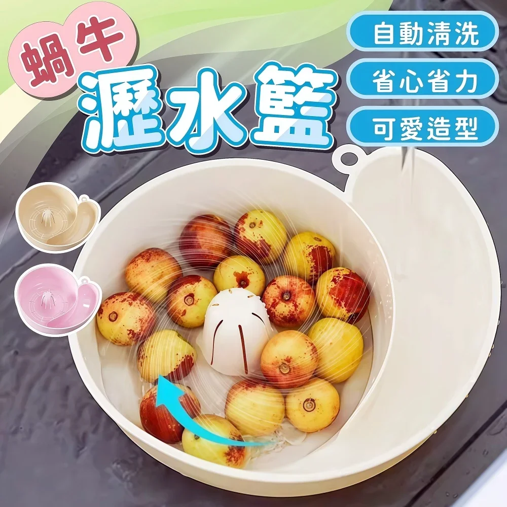 蝸牛瀝水籃 蔬果清洗好幫手 自動清洗省心力,蔬果洗淨更輕鬆瀝水清洗二合一,廚房收納不占地