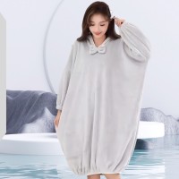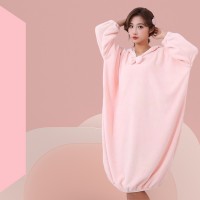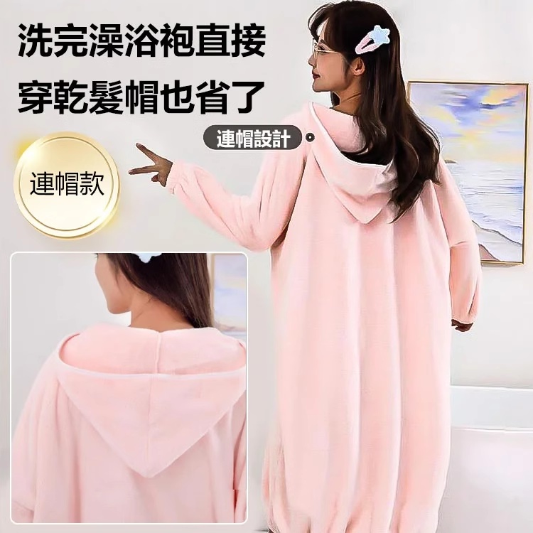 買一送一【珊瑚絨連帽浴袍】浴袍 睡衣 居家服 一套搞定