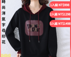 [1] 撞色字母連帽衛衣【時尚減齡】1入組 NT$998(免運)