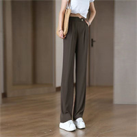 2026春季新款百搭冰絲涼涼休閒褲女高腰顯瘦顯高垂感窄版直筒褲子